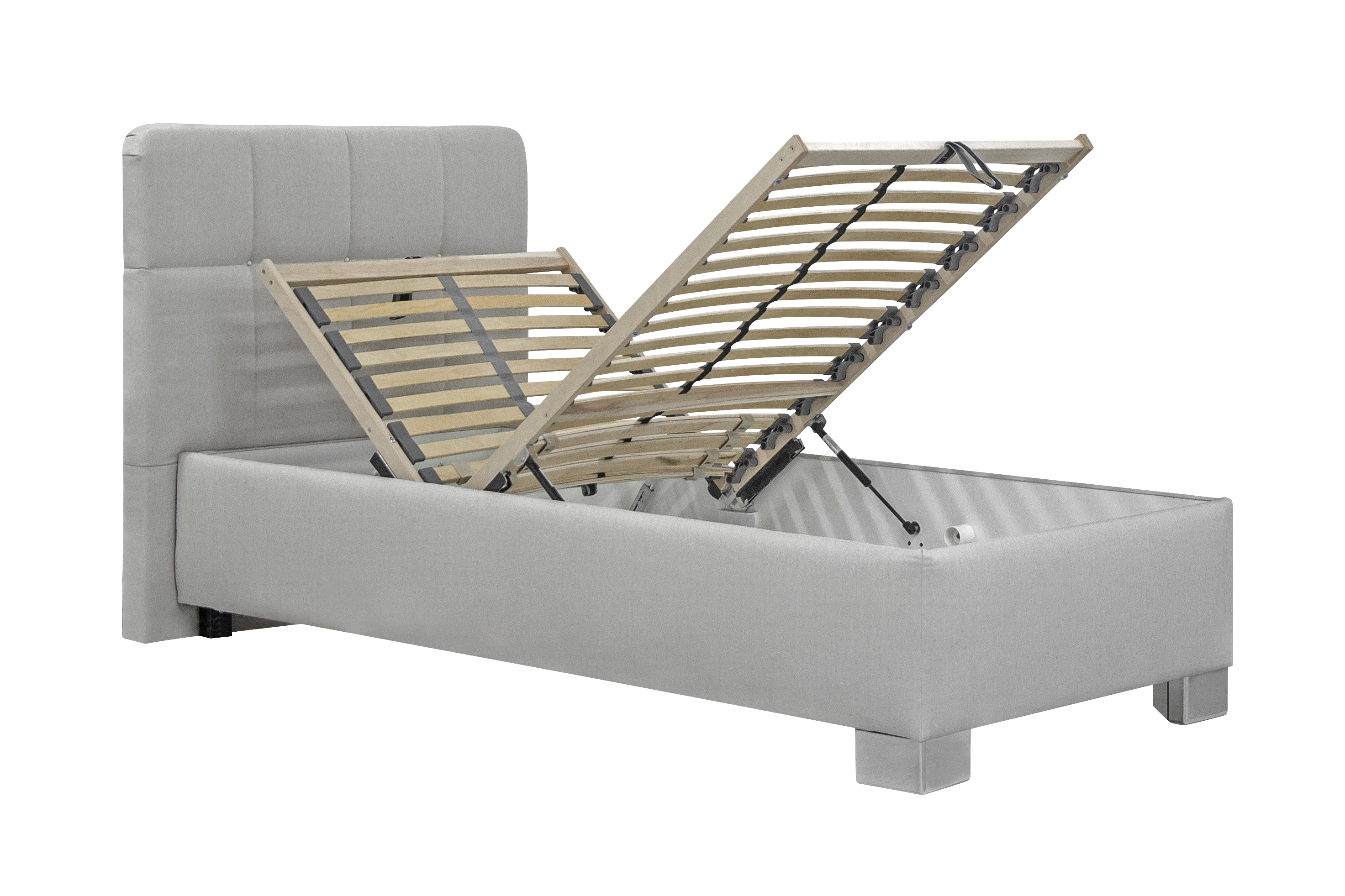 Úložný prostor lůžka se otevírá za pomoci plynových pístů od nohou postele. Výška nožičky je 10 cm.