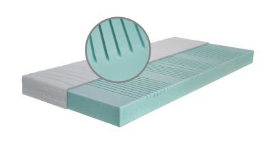 - Pěnová matrace z elastické polyuretanové pěny (tzv. PUR pěny). Speciálně strukturovaný povrch jádra matrace zajišťuje dobré přizpůsobení se tělu a optimální proudění vzduchu.