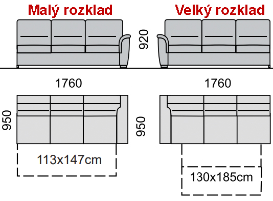 | Délka sedací soupravy: ?Rozměr nejdelší části sedací soupravy |